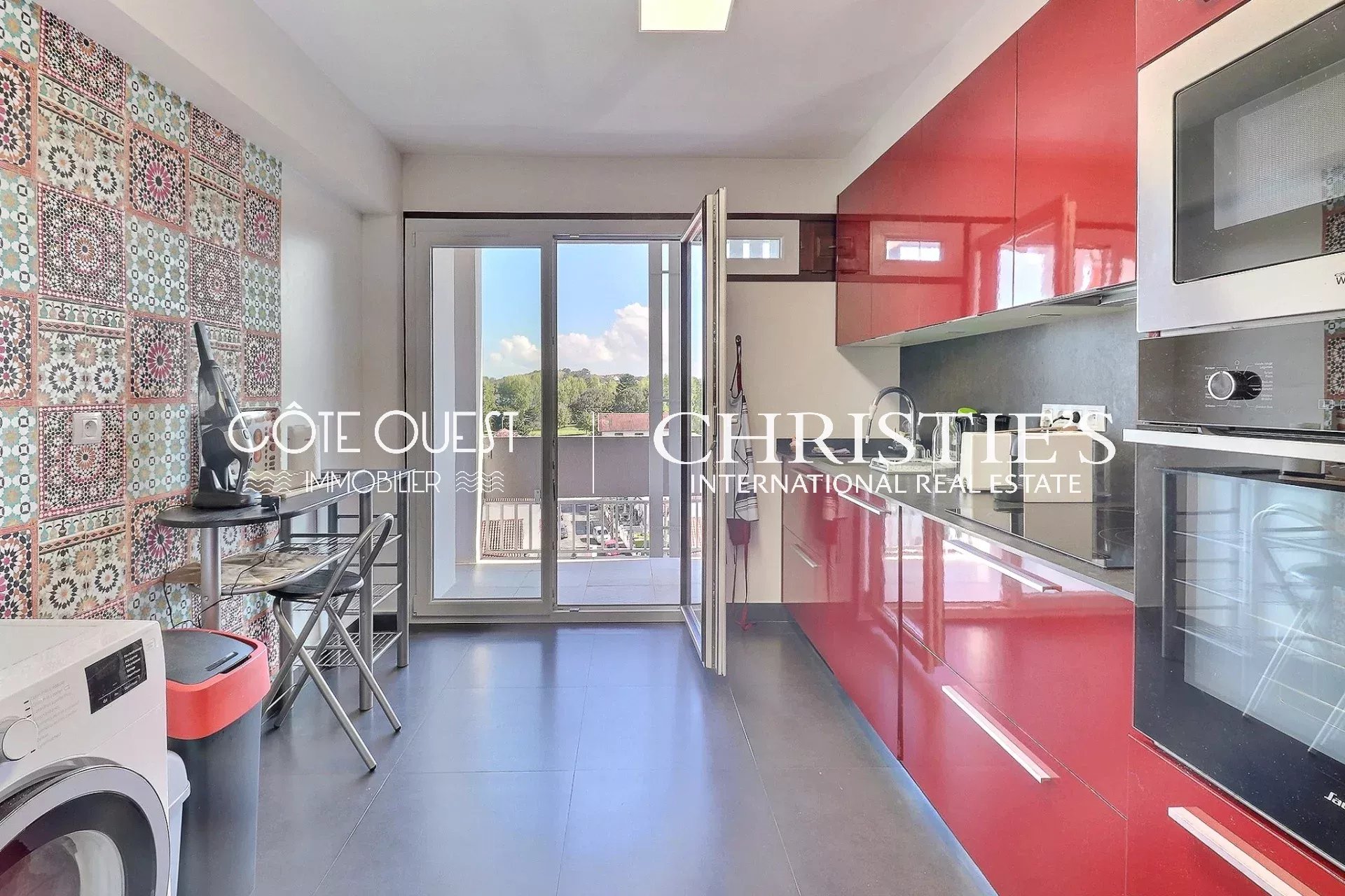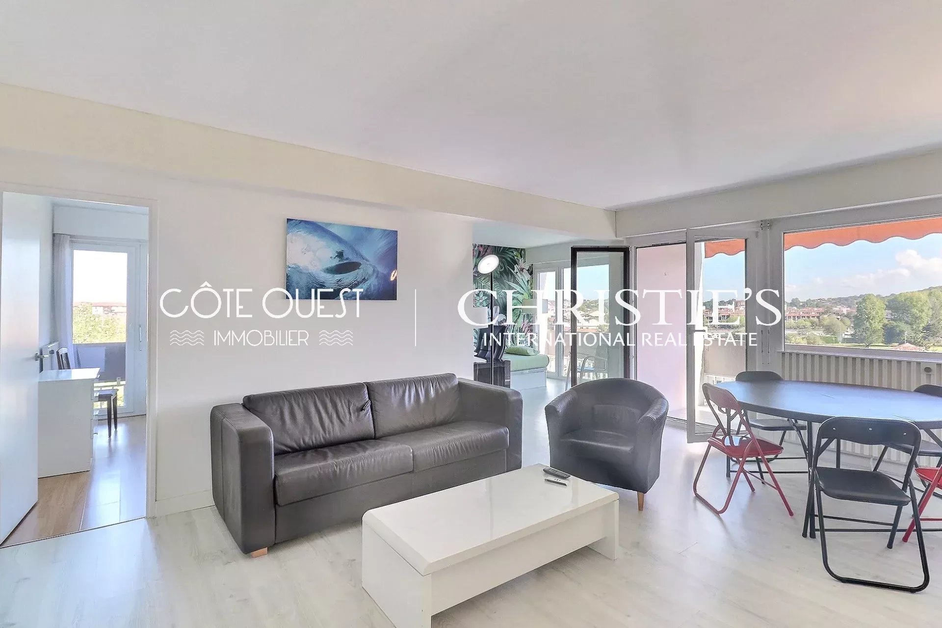It features a large living/dining room with an unobstructed view of the Ciboure golf course. The kitchen is currently separate, but can be opened up if required. The kitchen and living/dining room open onto a large terrace on one side and a balcony on the other. Two bedrooms with large closets, a shower room and a large toilet with washbasin complete the ensemble.