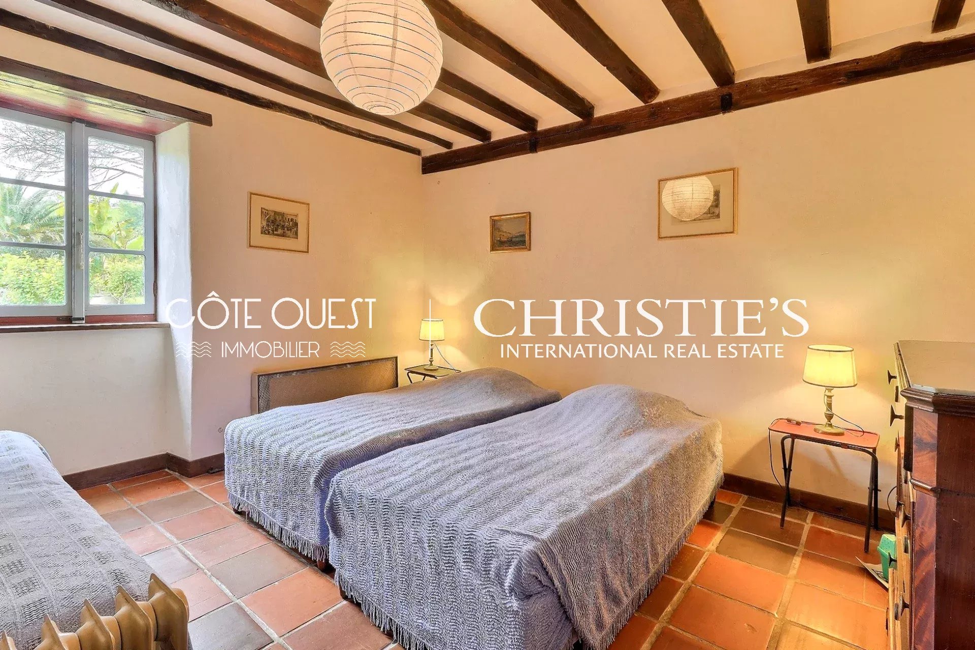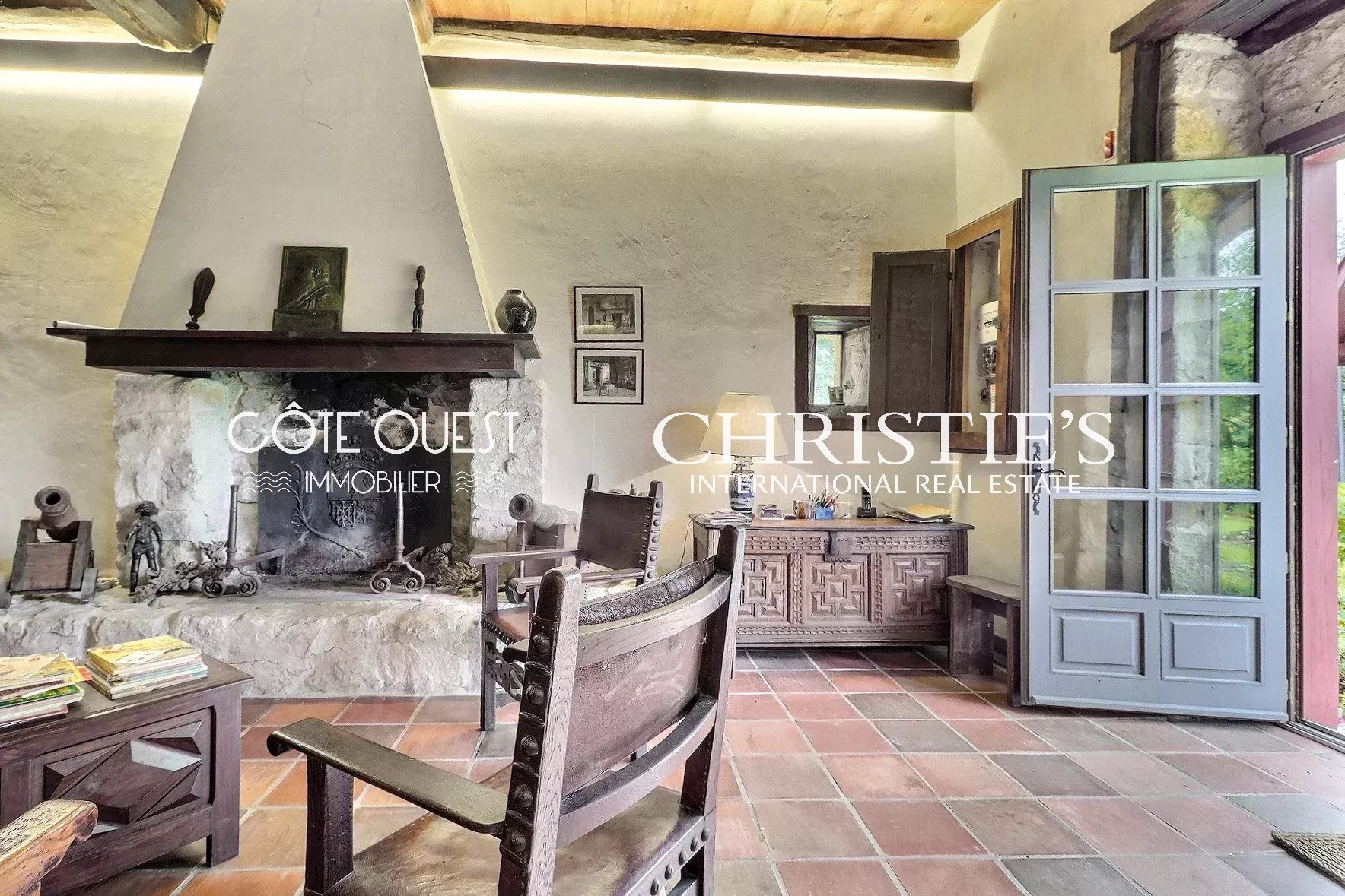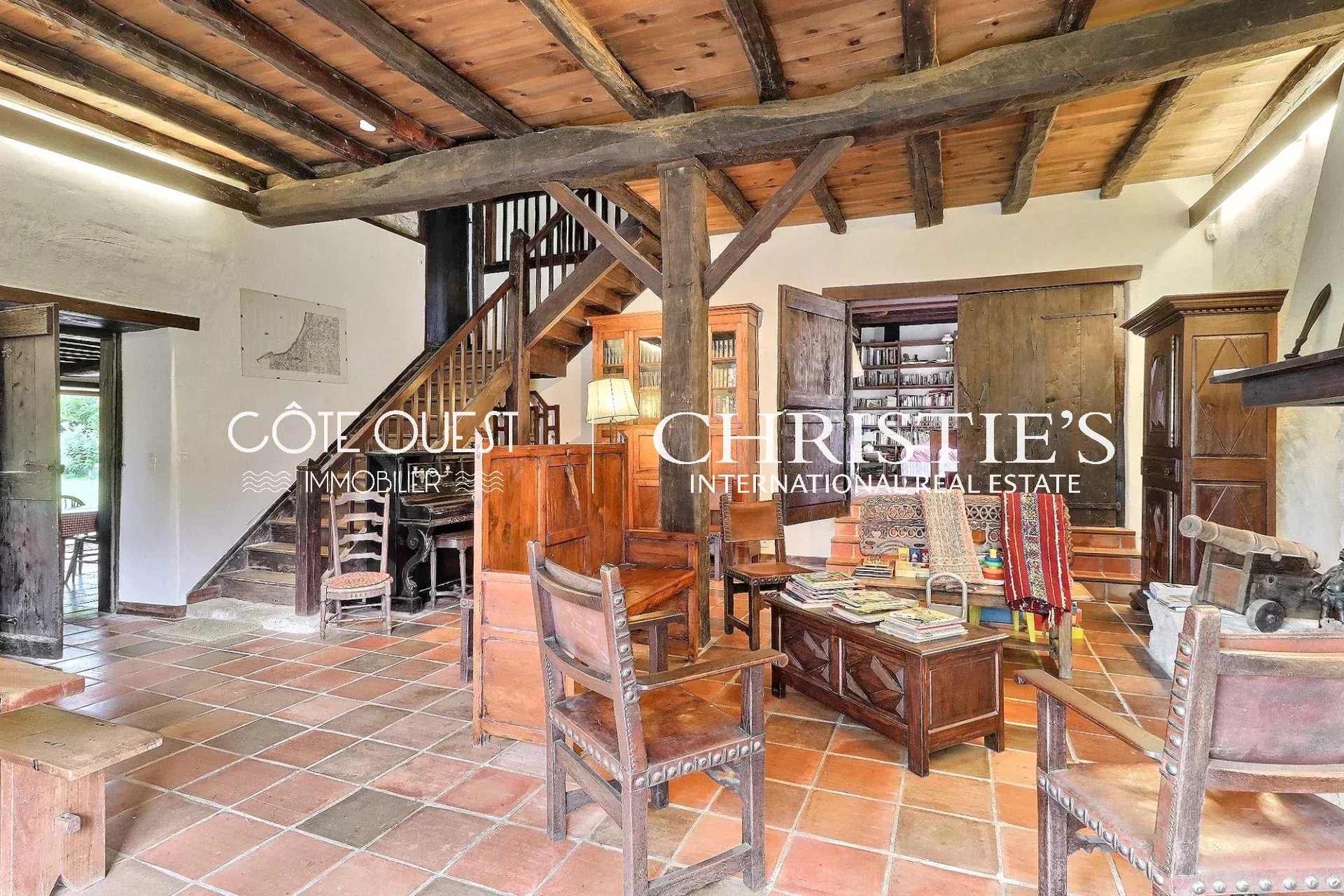There's a majestic living room with a superb fireplace, a kitchen opening onto the dining room and two charming bedrooms. Upstairs, there are two bedrooms, one with a balcony, and a bathroom. There's also a huge 90 sqm room to be converted as you wish.