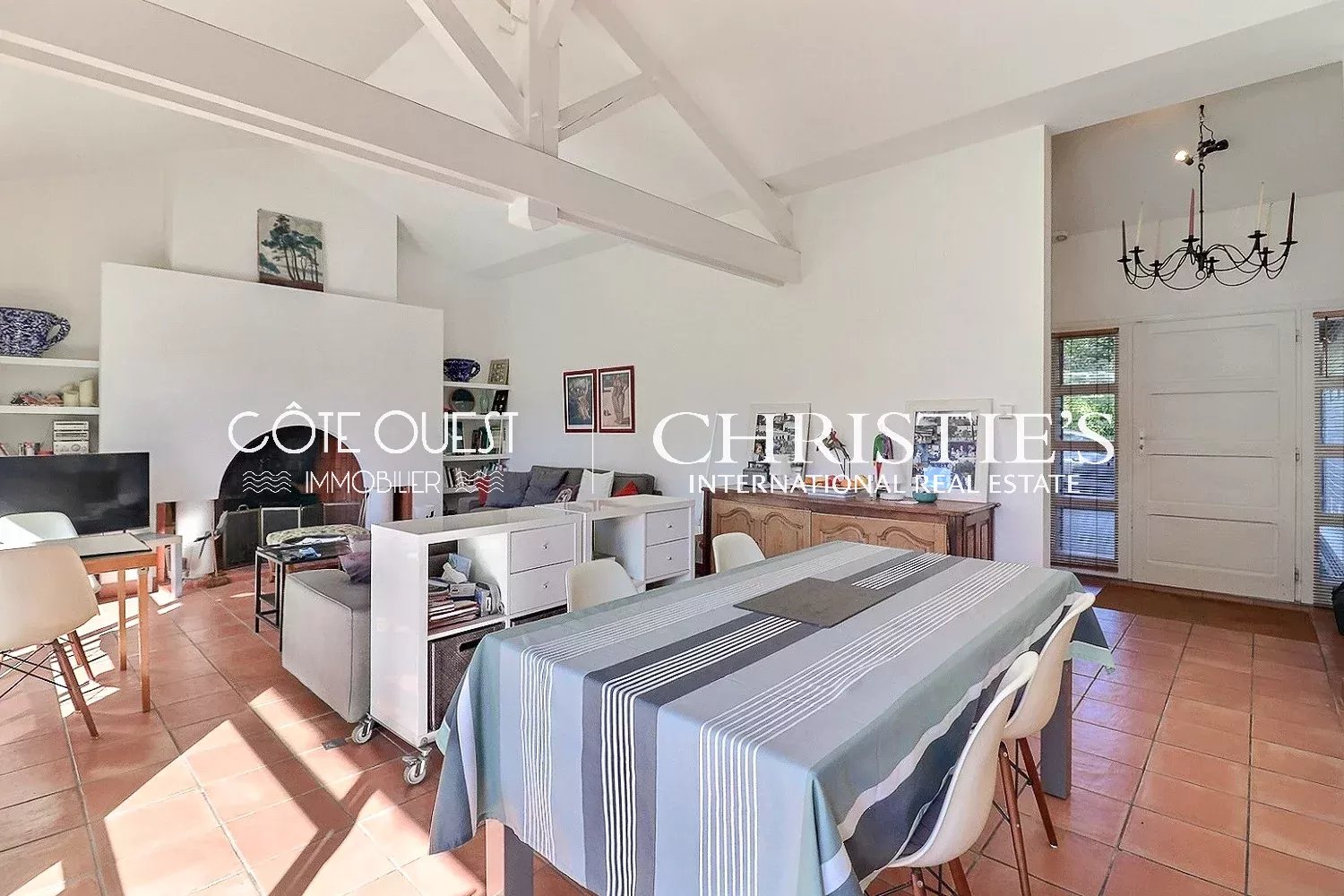 El corazón de la casa gira en torno a un amplio salón bañado de luz, que se abre a una terraza orientada al lago. El salón goza de una vista ininterrumpida sobre el lago de Hossegor, un auténtico tableau vivant para admirar todos los días. La cocina, abierta y totalmente equipada, es una prolongación natural de este acogedor espacio de recepción.
